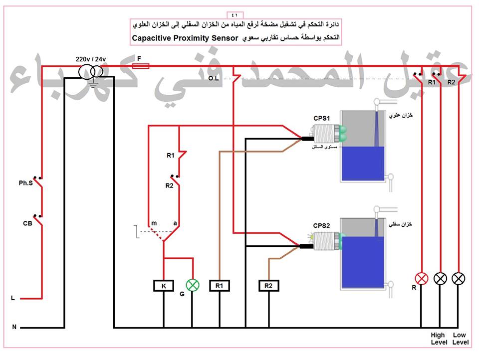 طريقة توصيل كهرباء عوامة الخزان العلوي