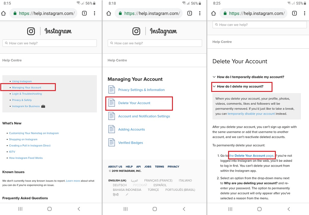 طريقة حذف حساب انستقرام Instagram نهائيا من الهاتف بالصور