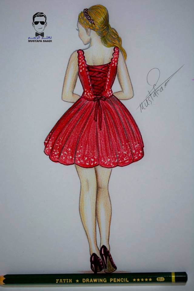 رسم سهل بنت ترسم ترتدى فستان احمر خطوة بخطوة Youtube