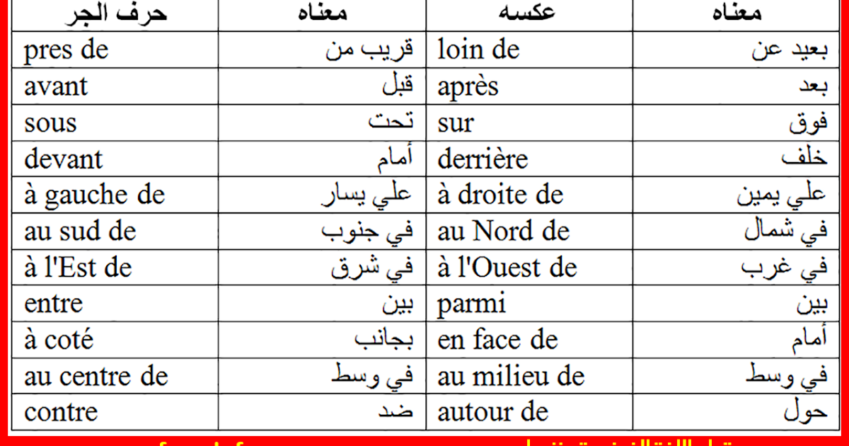 مجموعة ضخمة من الحروف وكلمات دلالية في اللغة الفرنسية تستعمل بكثرة مكتوبة مع الترجمة أضدادها و إستخداماتها في جمل أيضا