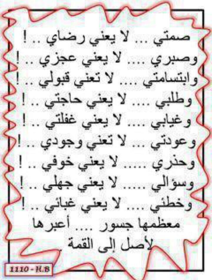 لا تحسبن صمتى جهلا أو نسيانا فالأرض صامته وفي جوفها بركان فالصمت لغتي فاعذروني لقلة كلامي فرب ما ما يدور حولي لا يستحق الكلا Love Words Arabic Quotes Words