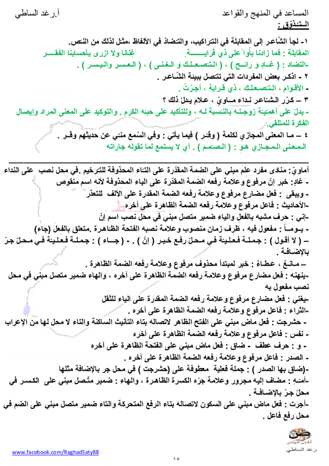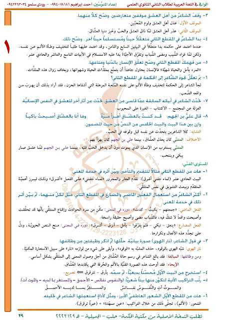 حلول لغة عربية نص عبرات شاعر المناهج الدراسية السورية Facebook