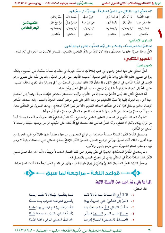 نص عبرات شاعر للمتنبي المناهج الدراسية السورية Facebook