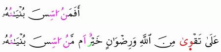 أ ف م ن أ س س ب ن ي ان ه ع ل ى ت ق و ى م ن الل ه و ر ض و ان خ ي ر أ م م ن أ س س ب ن ي ان ه ع ل ى ش ف ا ج ر ف ه ار ف ان ه ار ب ه ف ي ن ار ج ه ن م و الل ه ل ا ي ه د ي ال ق و م الظ ال م ين تفسير ابن كثير